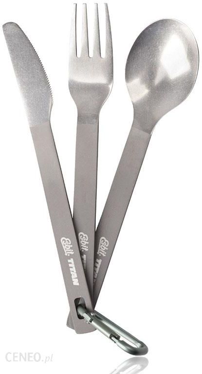Funkcjonalny i lekki zestaw sztućców Esbit wykonany z wytrzymałego oraz odpornego na korozję tytanu .Zestaw zawiera:- łyżkę,- widelec,- nóż,- karabinek,- nylonowy pokrowiec.Dane techniczneMateriał: tytanDługość: 155 mmWaga: 40 gWymiary etui: 180 x 50 mmProducent: Esbit, Niemcy