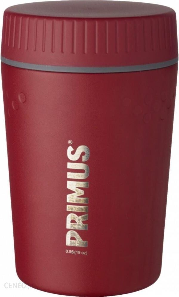 Termos na jedzenie TrailBreak Lunch Jug 550ml Czerwony Opisproduktu:Termos z serii TrailBreak został wyprodukowany z wysokiej jakości stali nierdzewnej, dzięki czemu jest niezwykle wytrzymały i trwały. Do jego budowy wykorzystano technologię próżniowej izolacji ścianek co zapewnia doskonałe walory termiczne – termos trzyma ciepło nawet do 8 godzin.Na korpusie oraz nakrętce wykonano specjalne wcięcia poprawiające chwyt termosu. Termos zaprojektowano w taki sposób, aby był bardzo prosty w zachowaniu czystości.Specyfikacja:Wysokość (mm): 137Średnica (mm): 93Pojemność (ml): 550Ciężar (g): 315Primus to doceniana i lubiana na całym świecie szwedzka marka. Uznawana jest za pioniera na rynku produktów turystycznych od 1892 roku. Produkty firmy Primus towarzyszyły Roaldowi Amundsenowi gdy dotarł jako pierwszy człowiek do bieguna południowego w 1911 r. A sir Edmund Hillary i Tenzing Norgay używali Primus gdy wspinali się na szczyt Mount Everest 29 maja 1953 r.Teraz Twoja kolei 🙂